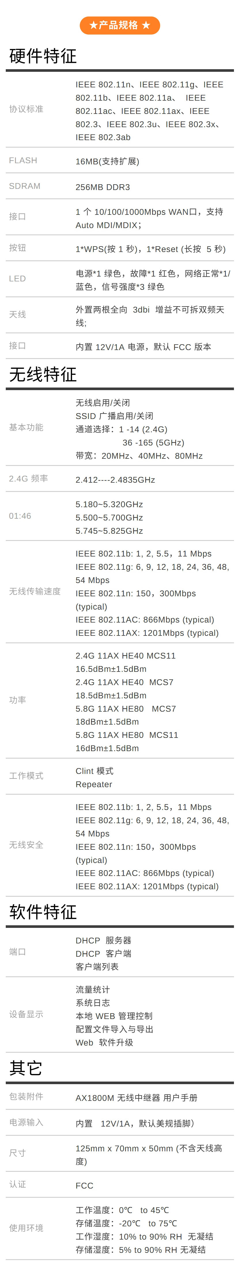品名:WiFi 6 1800兆雙頻無(wú)線中繼器